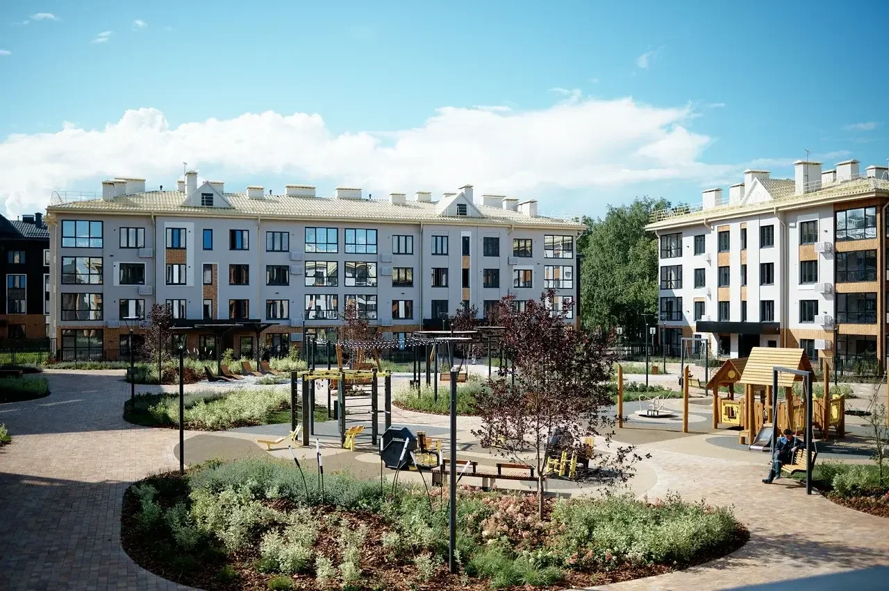 Мы посмотрели на участок по новому: отказались от типично-загородной концепции и выбрали сторону городской застройки, но в среднеэтажном исполнении. Так появился четырёхэтажный квартал «Эклипт».