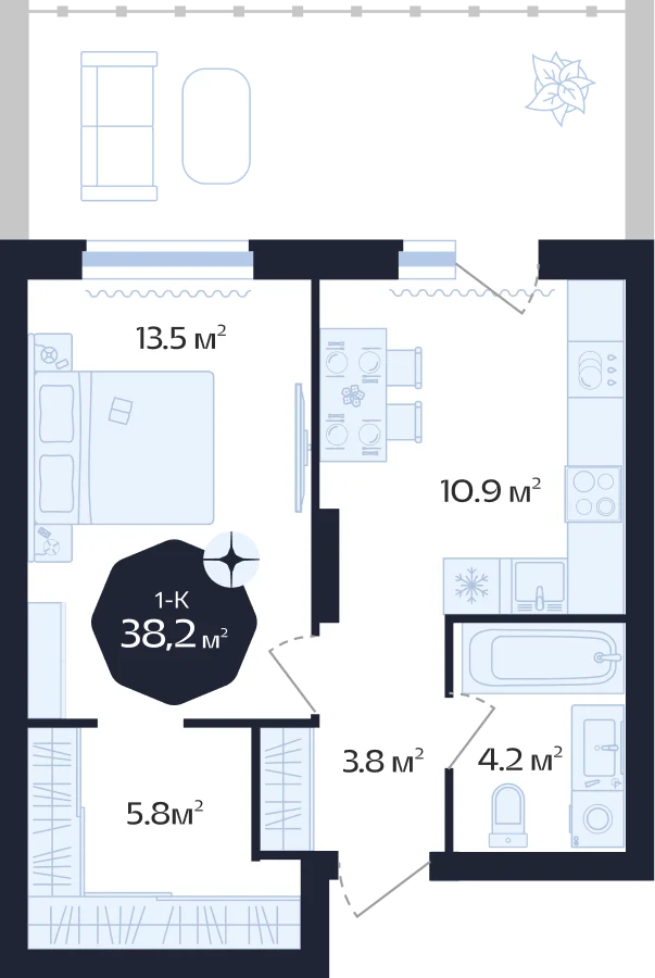 - № 311 с террасойДа. Квартал ЦентральЖК Централь, ГП-5, Секция 1, Этаж 1